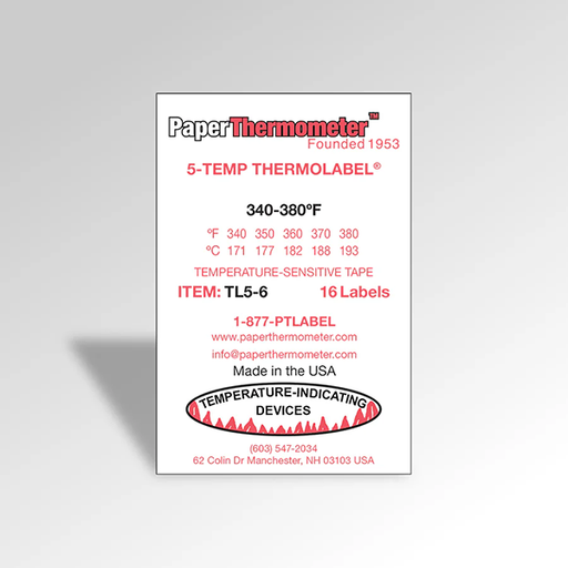 $24.17 $24.17| /5 level self-adhering indicators are available in packages of 16 labels each.Our 5-Temp Thermolabel® 340-380°F features five incremental temperatur...